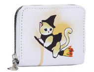 Оригинальный кошелек из полиэстера и искусственной кожи имеет одно отделение на молнии, кармашки для проездного, карт. Закрывается на липучку.