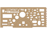 Линейка с односторонней миллиметровой шкалой изготовлена из пластика. Включает в себя различные геометрические фигуры, транспортир, специальные графические изображения и содержит всё необходимое для построения и работы с картами.