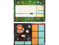 Многоразовое детское расписание уроков (понедельник-суббота). Для письма подойдут маркеры или фломастеры на водной основе (в набор не ходят). Ламинированная поверхность позволяет вносить изменения и правки. Изготовлено из плотного картона с глянцевой ламинацией.