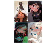 Блокнот на скобе «Девушки и коты-2» 106×167 мм, 24 л., клетка, ассорти 1,08 105249