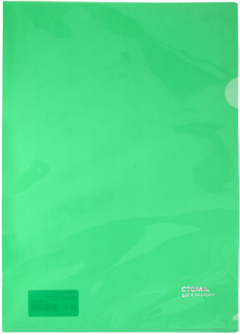 Папка-уголок пластиковая «Стамм» А4, толщина пластика 0,18 мм, прозрачная зеленая