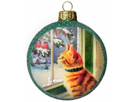 Украшение елочное стеклянное «Грай», 105×80×27 мм, «Медальон. Кот у окошка»