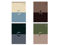 Формат ≈А6. Обложка изготовлена из мелованного картона. Внутренний блок — бумага белая офсетная, печать — синее графление. Переплет на гребне сверху. В деталях указан размер, количество листов, тип графления. Обложка имеет различные варианты дизайна (ассорти).
