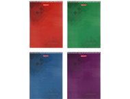 Формат ≈А4. Обложка изготовлена из мелованного картона. Внутренний блок — бумага белая офсетная, печать — голубое графление. Твердая подложка. Переплет на гребне сверху. В деталях указан размер, количество листов, тип графления. Обложка имеет различные варианты дизайна (ассорти).