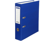 Формат А4. Изготовлен из плотного картона с односторонним бумвиниловым покрытием. Карман с этикеткой для подписи на корешке, круглое отверстие для захвата на корешке, прорези-замки на боковой поверхности для замыкания папки в закрытом состоянии. Высота регистратора 320 мм.