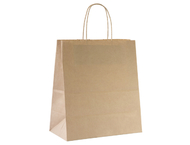 Бумажный пакет из крафт-бумаги с кручеными ручками. Подойдут для пищевых продуктов и других бытовых товаров. Благодаря плотной бумаге, они обладают высокой прочностью и отлично держат форму.