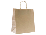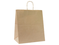 Бумажный пакет из крафт-бумаги с кручеными ручками. Подойдет для пищевых продуктов и других бытовых товаров. Благодаря плотной бумаге, они обладают высокой прочностью и отлично держат форму.