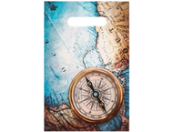 Яркий полиэтиленовый пакет с красочным рисунком. Вырубные ручки.