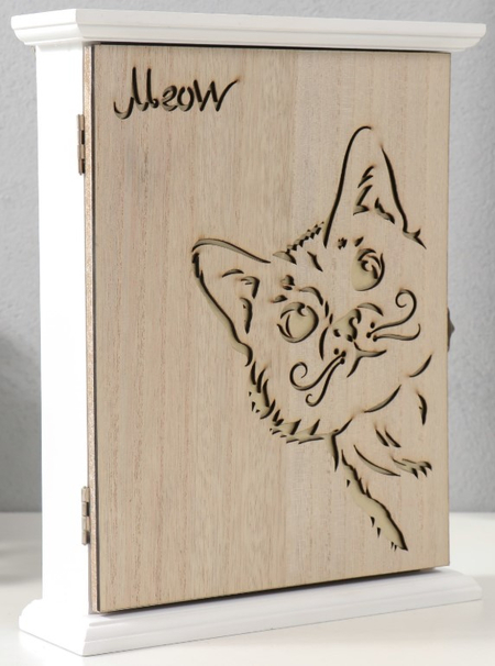 Ключница настенная деревянная закрытая Sima-Land, 26,5×20,8×6,3 см, 6 крючков, «Котик»