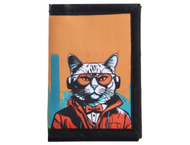 Оригинальный кошелек из полиэстера и искусственной кожи имеет одно отделение на молнии, кармашки для проездного, карт. Закрывается на липучку.