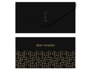 Красочная открытка-конверт из мелованного картона, матовое ламинирование, выборочное тиснение фольгой.