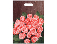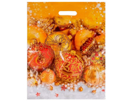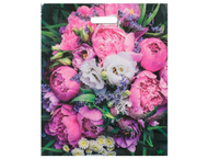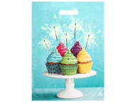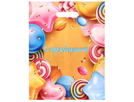 Яркий полиэтиленовый пакет с красочным рисунком. Вырубные ручки.