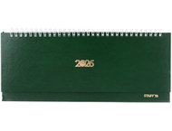Обложка изготовлена из твердого картона с бумвиниловым покрытием, выборочное тиснение фольгой. Внутренний блок — бумага белая офсетная одноцветная печать, линия. Содержит календарь на 2026-27 годы, страницы для записи телефонных номеров, календарь на три месяца. В деталях указан размер, количество листов, цвет обложки.