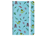 Формат ~А6. Обложка с ПВХ-покрытием. Внутренний блок — бумага тонированная офсетная, серое графление. Блок прошит. Закрывается на резинку.