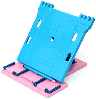 Подставка для книг изготовлена из цветного пластика. Пять уровней наклона. Все комбинации цветов элементов подставки случайны.
