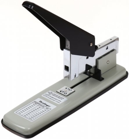 Корпус - металл. Сшивает до 220 листов. Используются скобы номер №23/6, 23/8, 23/10, 23/13, 23/15, 23/17, 23/20, 23/23, 23/24. Вмещает 100 скоб. Глубина захвата 70 мм.