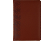 Формат ≈А5. Обложка из искусственной кожи с тиснением, поролоновая подкладка, швейная строчка по периметру. Углы закруглены. Внутренний блок — тонированная бумага, двухцветная печать, линия, 2 закладки-ляссе. Прошит. Содержит блок полезной информации, страницы для записи телефонных номеров, календарь на 2024-2027 годы. Перфорированные уголки. В деталях указан размер внутреннего блока, количество листов, цвет обложки.