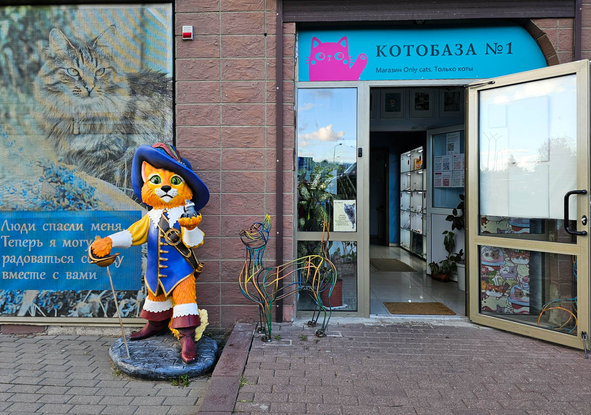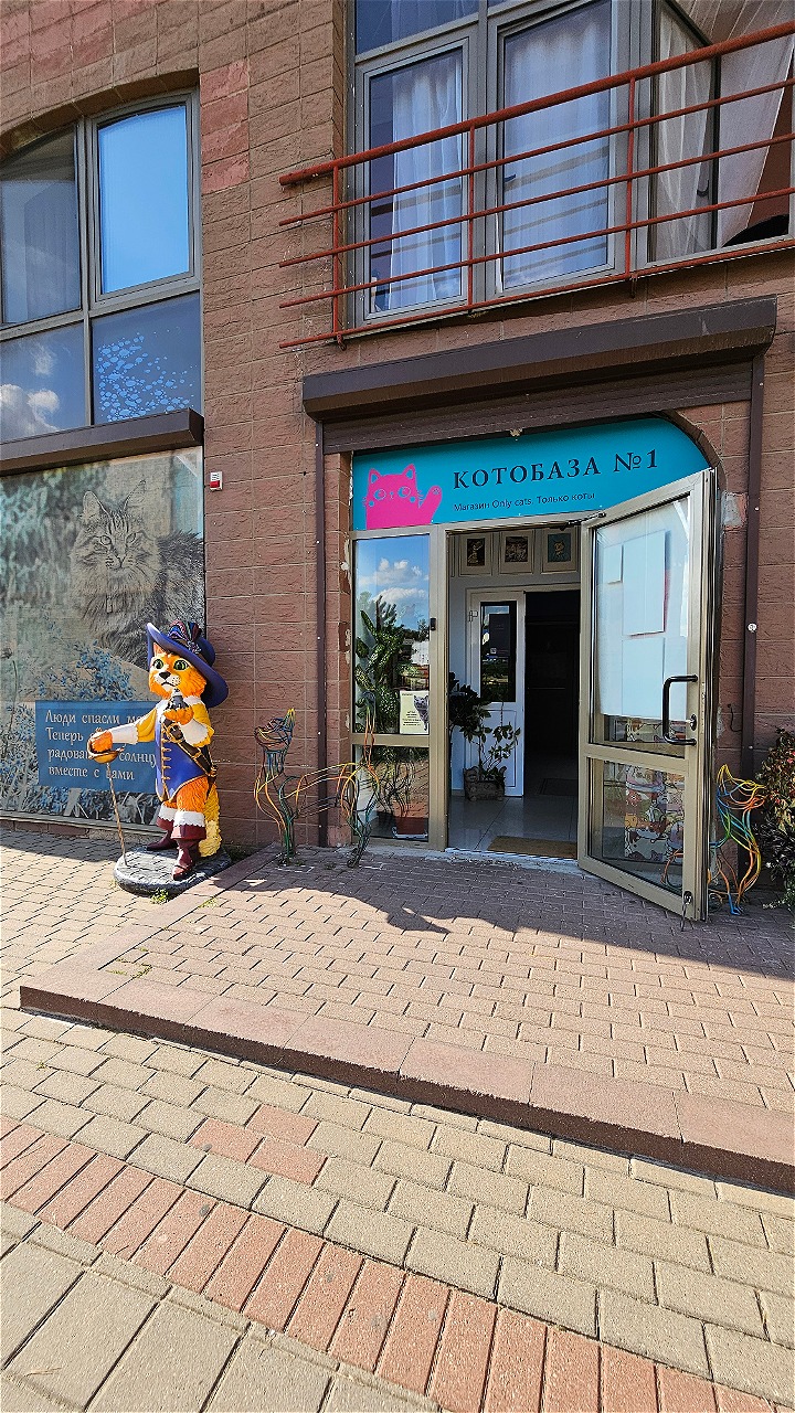 Пункт выдачи заказов находится в магазине «Котобаза» на первом этаже полукруглого многоэтажного дома по улице Наполеона Орды (через дорогу от строительного гипермаркета «Ома»). Справа от двери с огромной голубой вывеской «Арт-галерея «Котовасия».